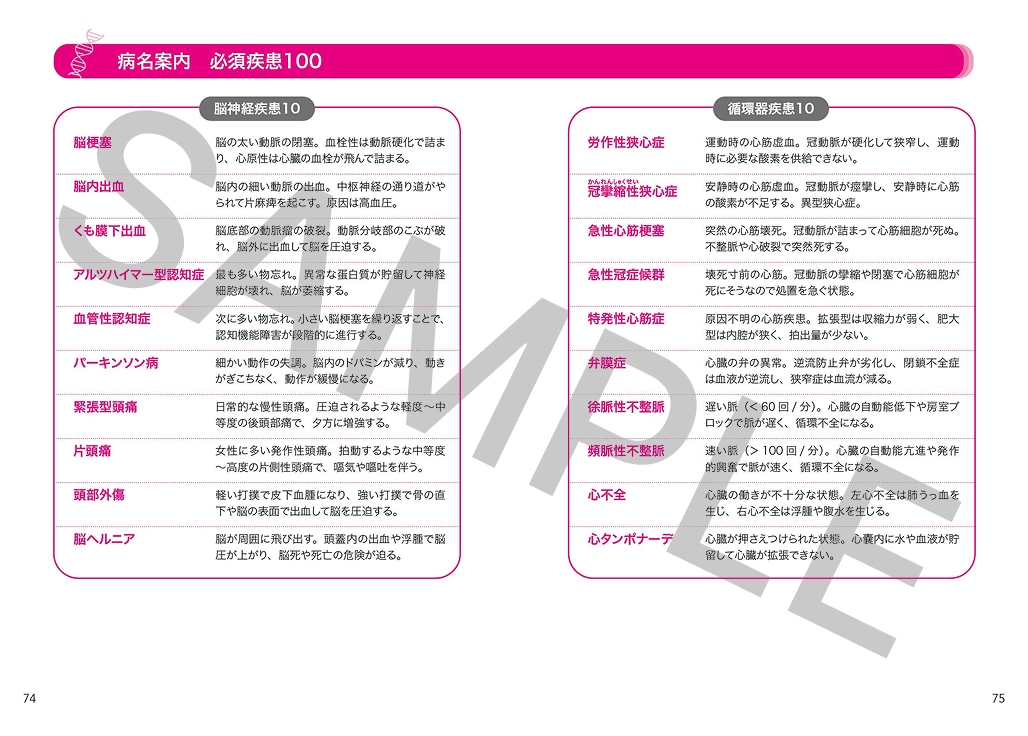 各分野で覚えておきたい基本的な疾患を簡潔に整理しています。